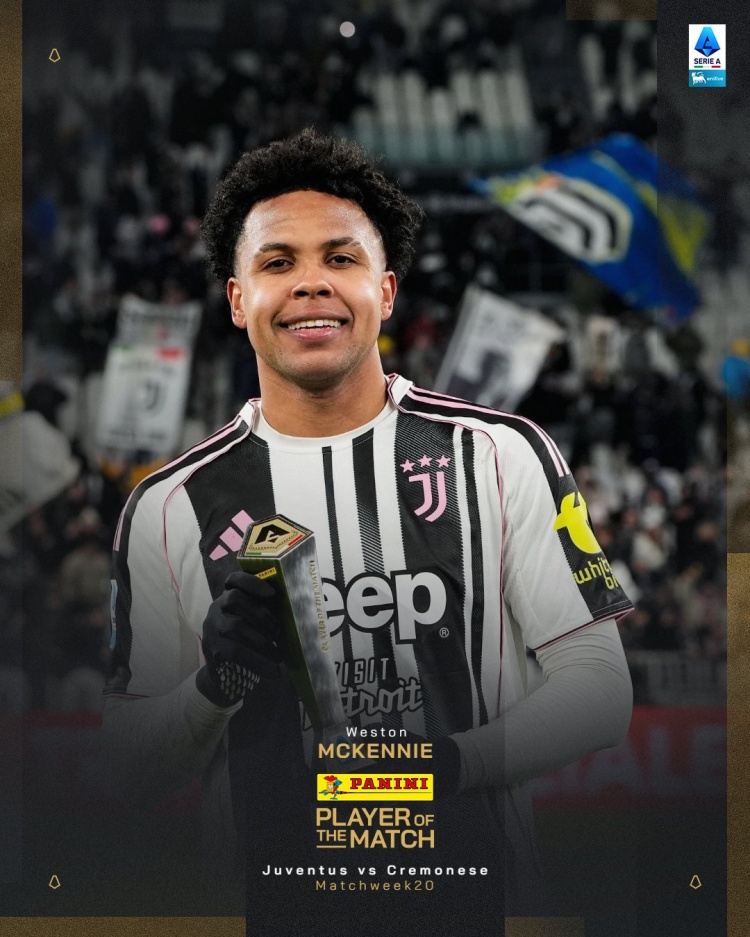 - 造乌龙+破门!麦肯尼当选尤文vs克雷莫内塞全场最佳球员2026-01-13