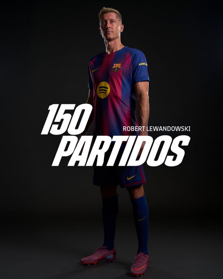 9月15日讯 37岁的莱万迎来了巴萨生涯150场里程碑,巴萨官方发海报为他庆祝。