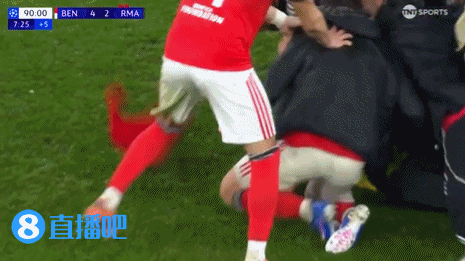 本场赛事 第98分钟,守门员特鲁宾破门为本菲卡取得关键的净胜球优势,穆里尼奥目睹“致胜球 ”后沿边界线 快跑 庆祝。