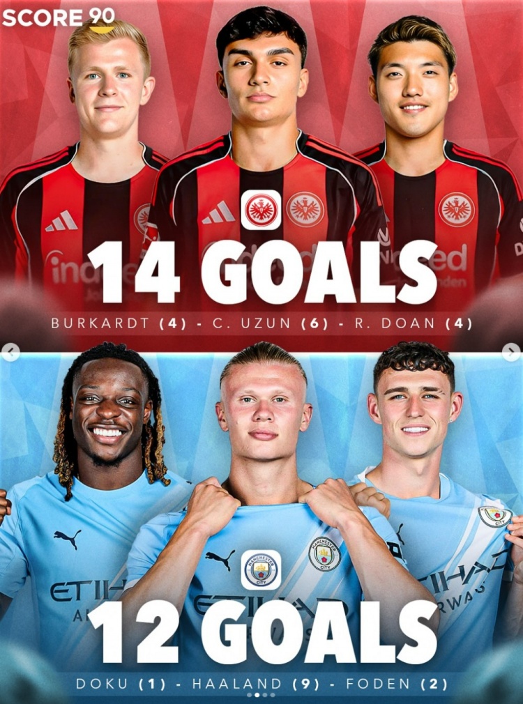 哈兰德9球、多库1球、福登2球